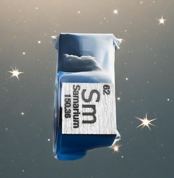 사마륨은 공기 중에서도 쉽게 산화되어 흐릿한 색을 띠는 외모의 소유자라, 마치 스파이처럼 변장하는 재주가 있습니다. 하지만 걱정 마세요! 여러분의 스마트폰이나 이어폰에 들어가는 자석에는 이 사마륨이 변장하지 않은 순수한 모습으로 활약하고 있답니다.